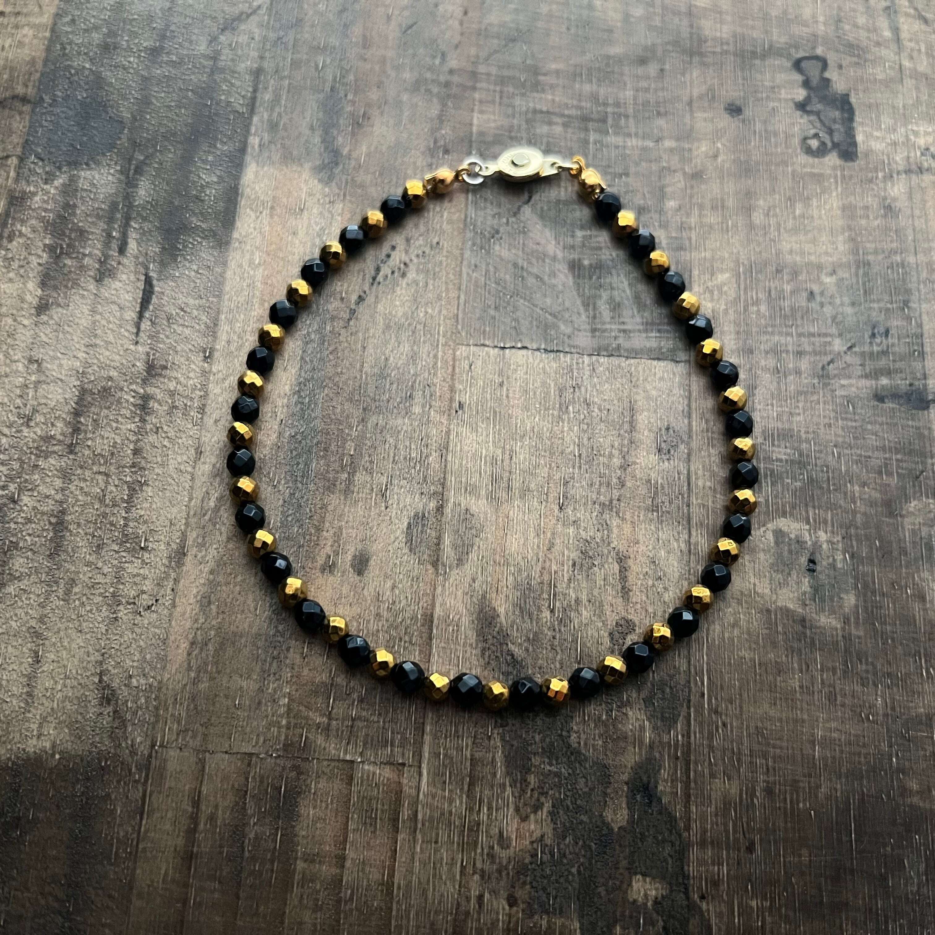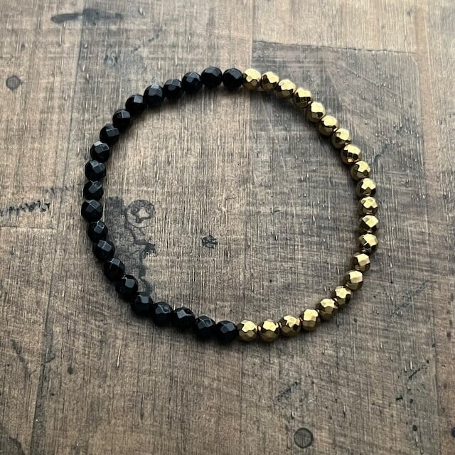 オニキスとゴールドカラーヘマタイトのハーフ&ハーフブレスレット