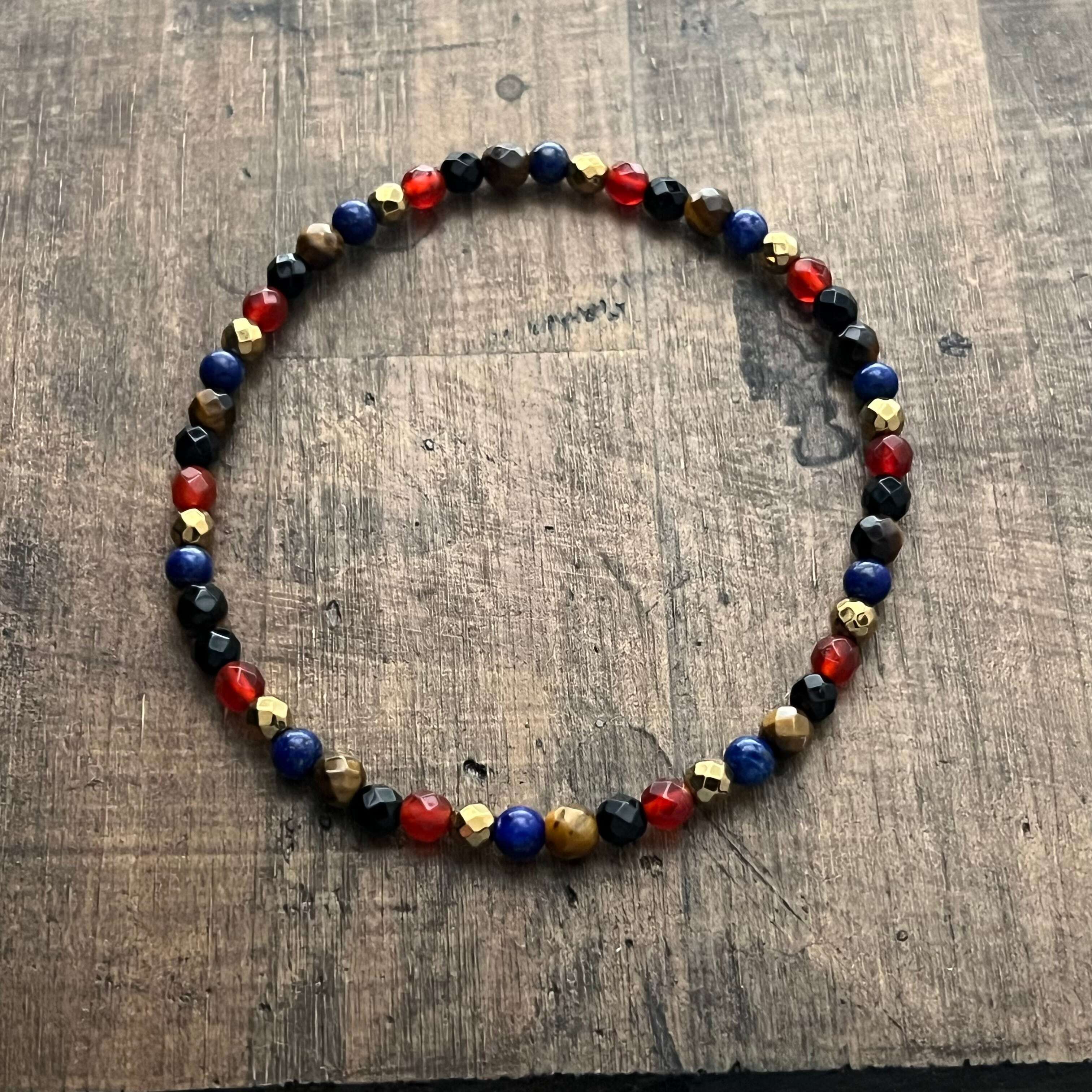 ゴールドヘマタイトとラピスラズリ4点ブレスレット。